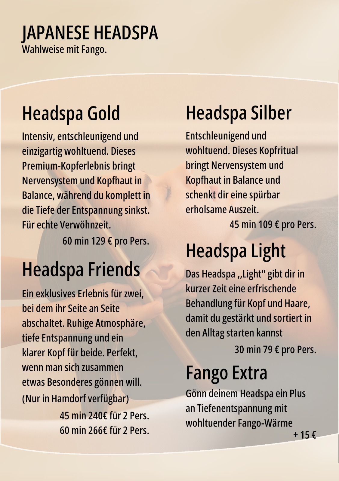 Gönne dir einen Moment, der dich an erste Stelle setzt und lass dich bei unserem Headspa verwöhnen.