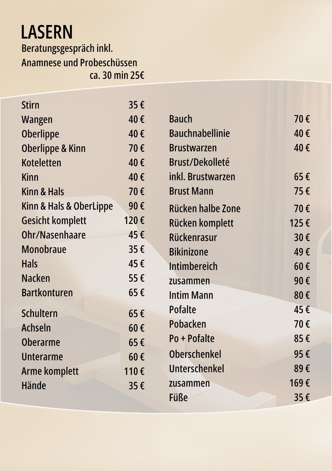Unser engagiertes Team besteht aus qualifizierten Fachkräften mit einem hohen Anspruch an Qualität und Kundenzufriedenheit. Unser Alleinstellungsmerkmal liegt in der Kombination aus medizinischer Professionalität und einem vielfältigen Kosmetikangebot. Neben effektiver und schonender Laser-Haarentfernung bieten wir auch professionelle Fußpflege, wohltuende Massagen sowie Cold Plasma Treatment, Aquafacial, Headspa und Wimpernlifting an.